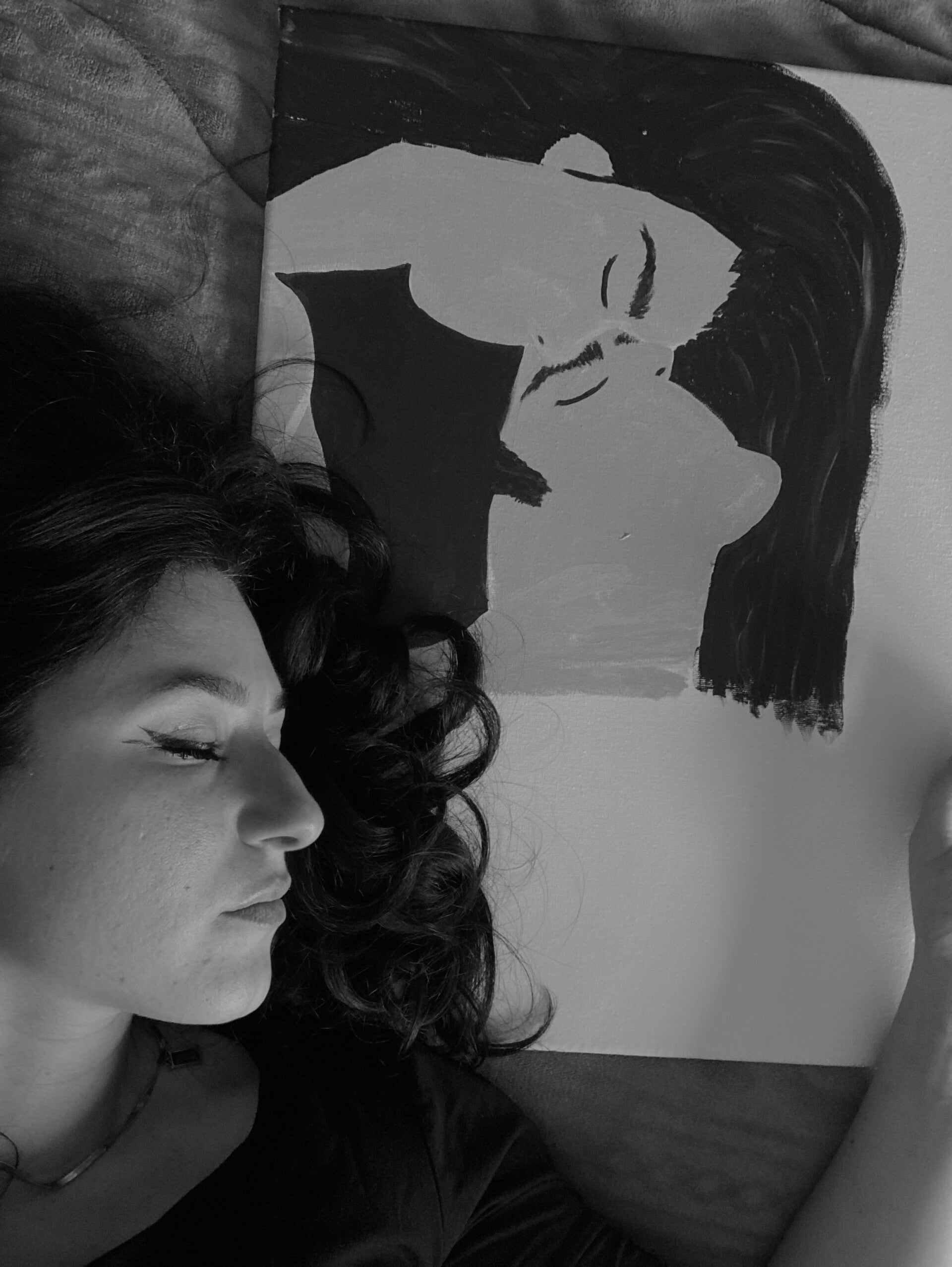 Questo quadro non é riuscito a trovare la sua pace, il suo completamento. Mi sono svegliata ogni giorno avendolo come prima visione della giornata. Bene non mi ha fatto, ma il mio era forse un modo per analizzarmi dentro? O accettare che solo l'estetica di un ricordo sarebbe rimasta e cosí poteva continuare a vivire, e non il resto. Gli ho messo accanto dei fiori. La sera, tornando a casa, mi sembrava la scena di un funerale. Poi l'ho messo sul letto. Lo osservavo, cercando di capire, e alla fine, mi sono sdraiata accanto a lui. Qualche ora dopo é scesa una lacrima. Io, non so, davvero, se lo continuerò, e senza volerlo sono diventata anch'io parte stessa del quadro.