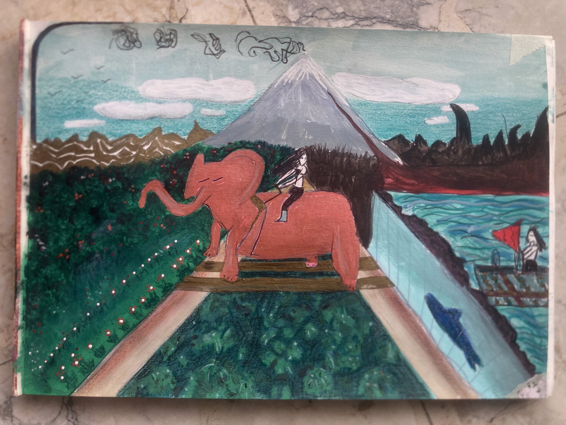 Io sono su di un elefante rosa, tranquillo e non cosciente del suo equilibrio precario.