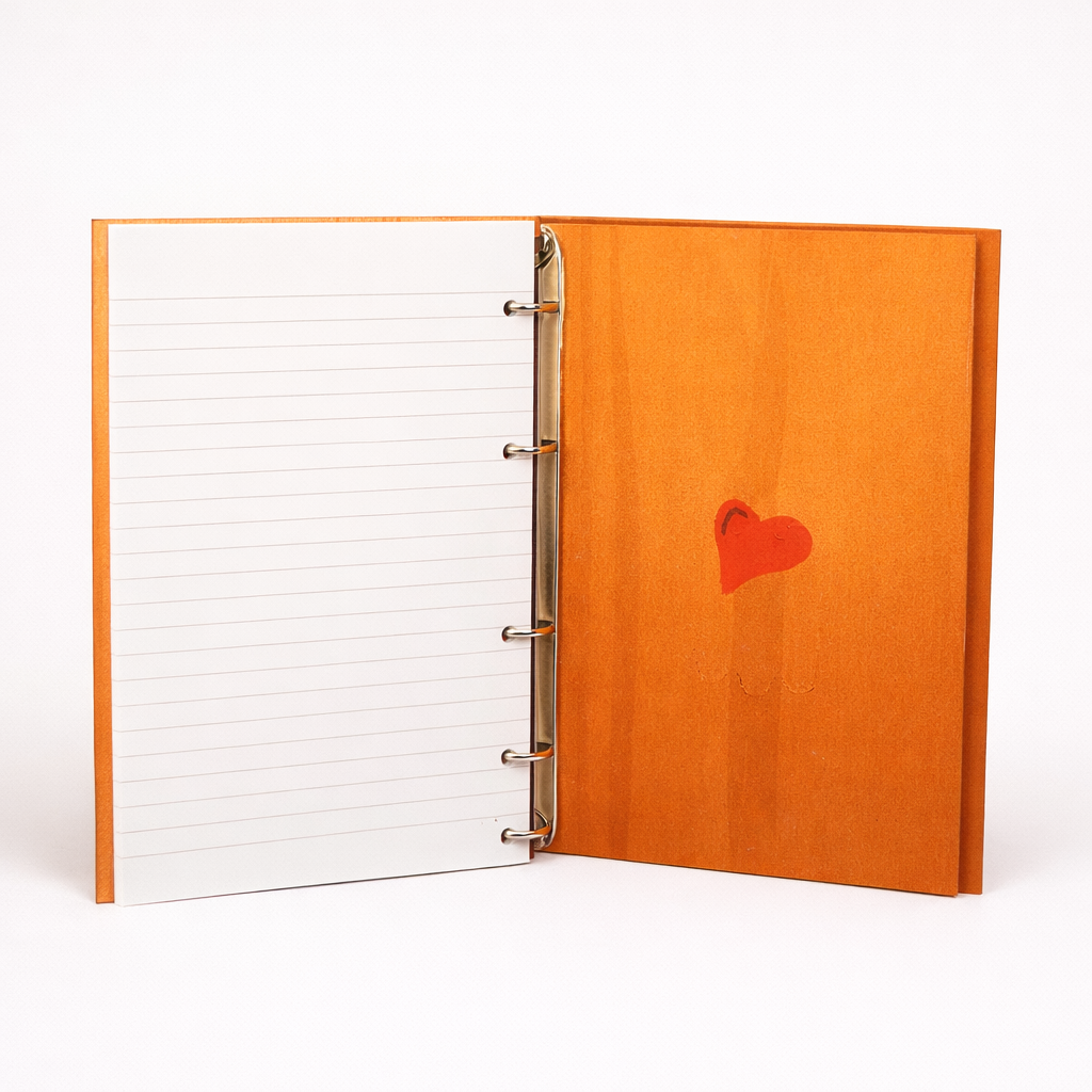 • Interno: fogli a righe (rimpiazzabili, grazie alla rilegatura ad anelli)
